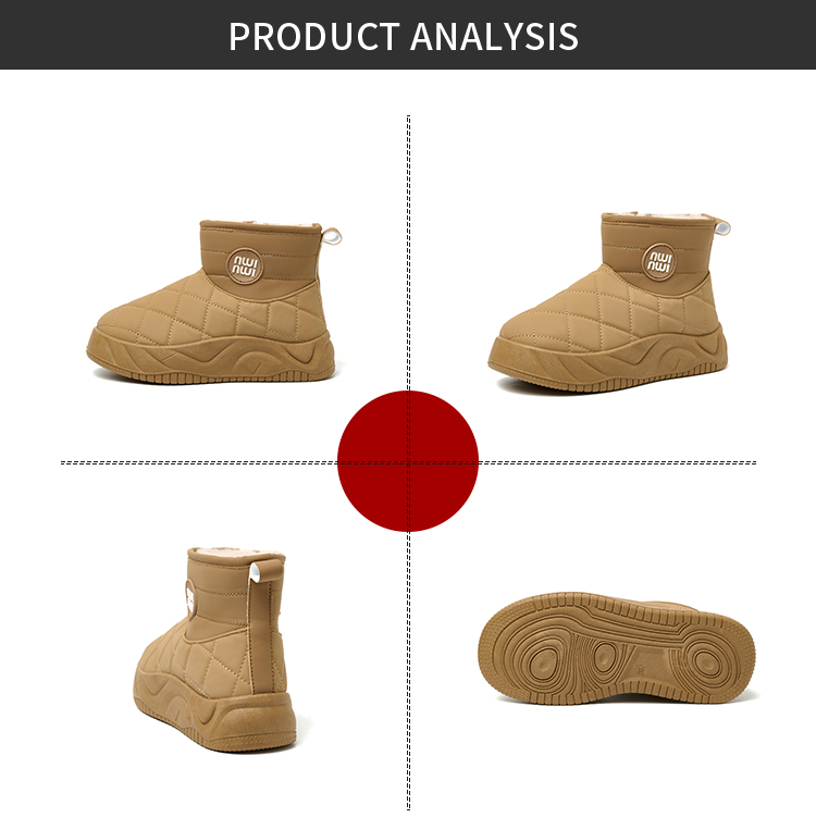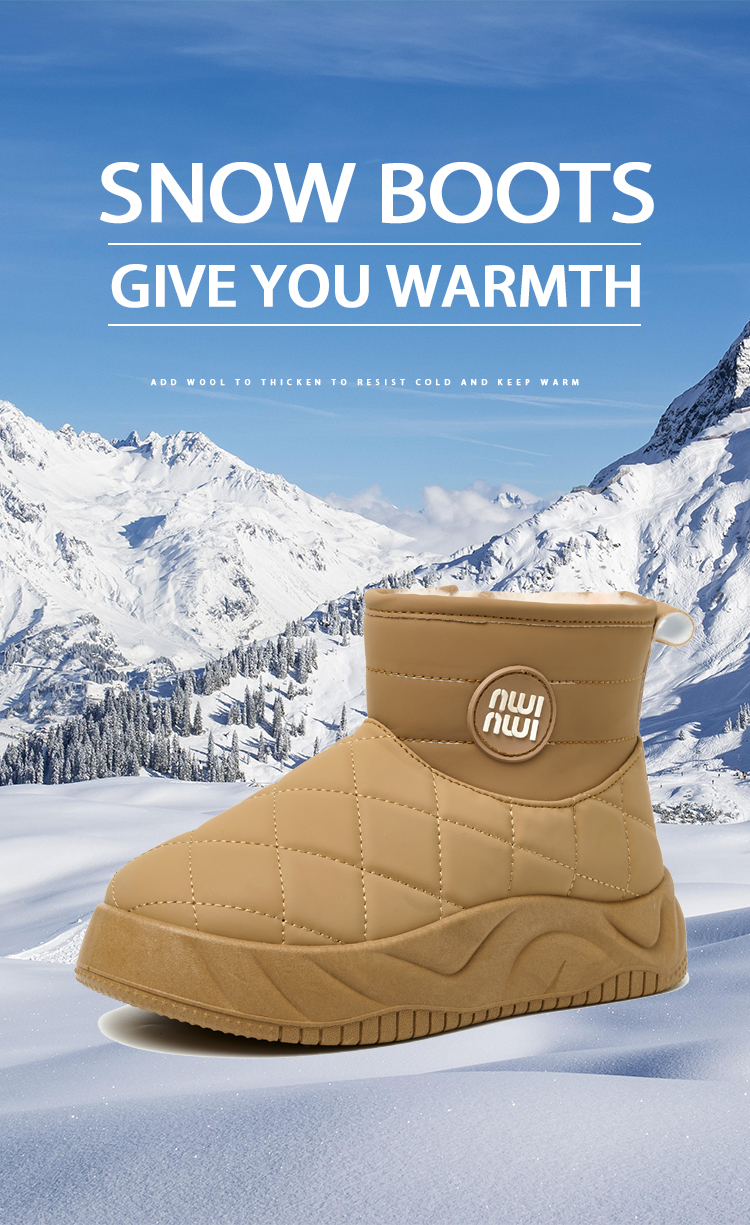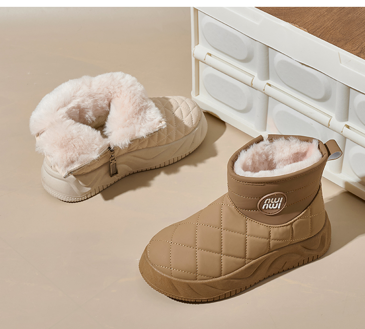 Bairuilun Winter Outdoor Waterproof Warm Plush Non-slip Thick Sole Height Increasing Lightweight Snow Boots For Women