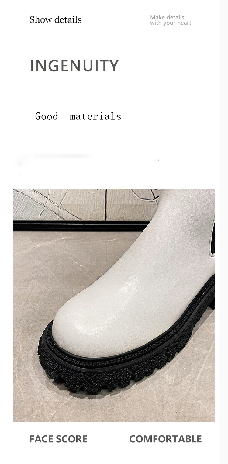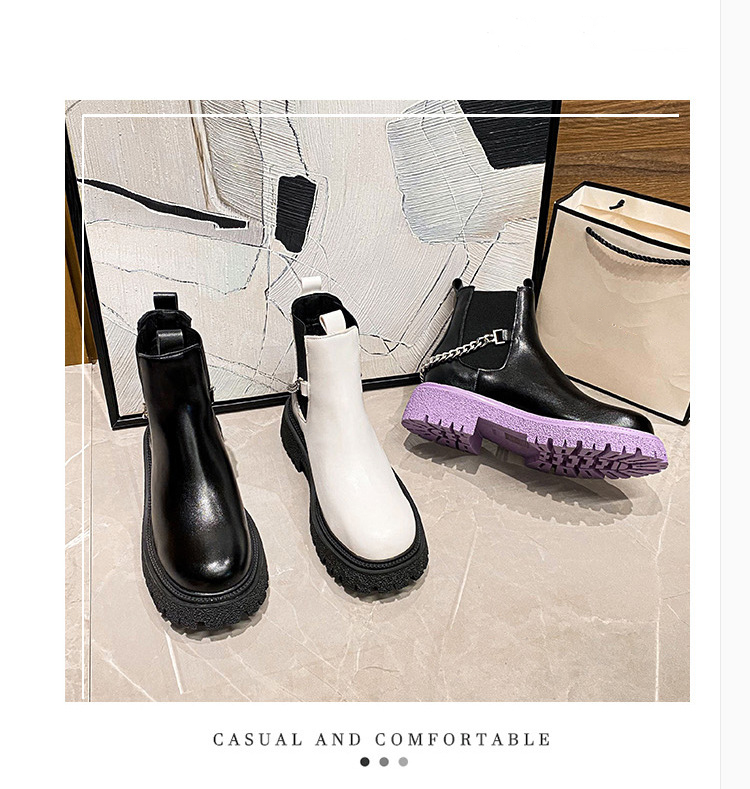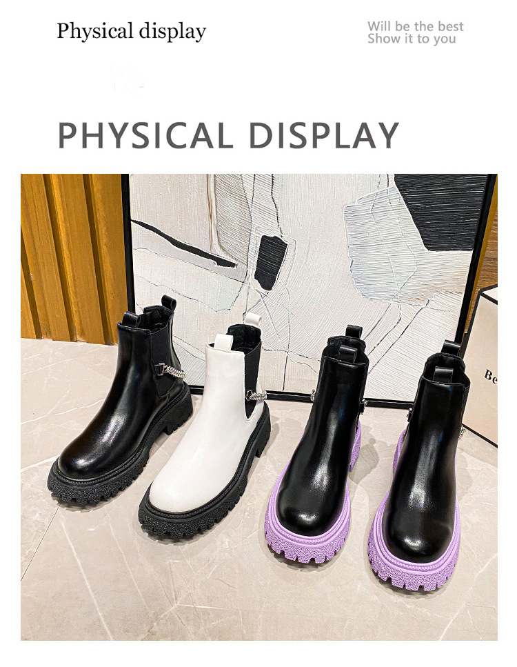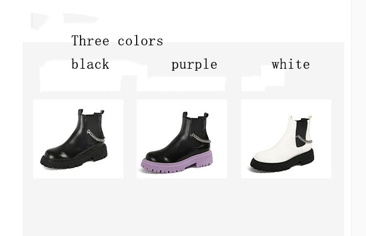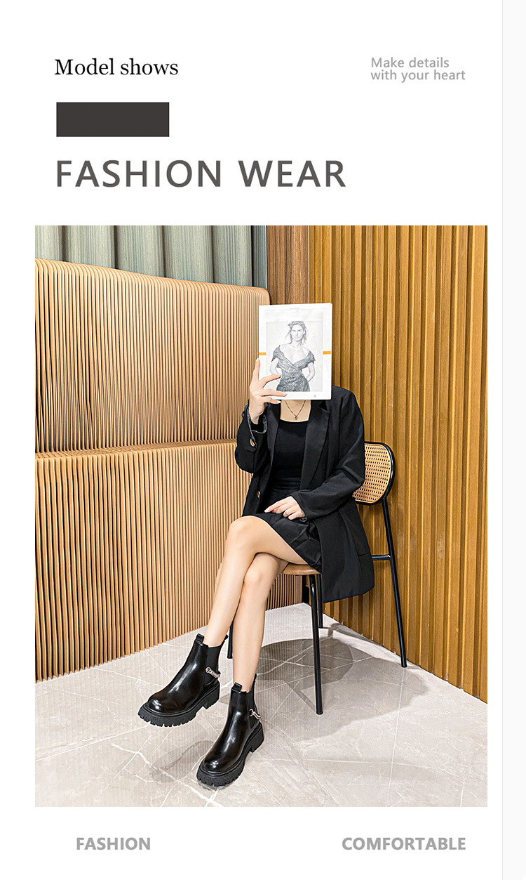• Martin Boots Fashion Short Boots Comfortable Flat Bottom Black PU Leather Boots Chain Decoration
