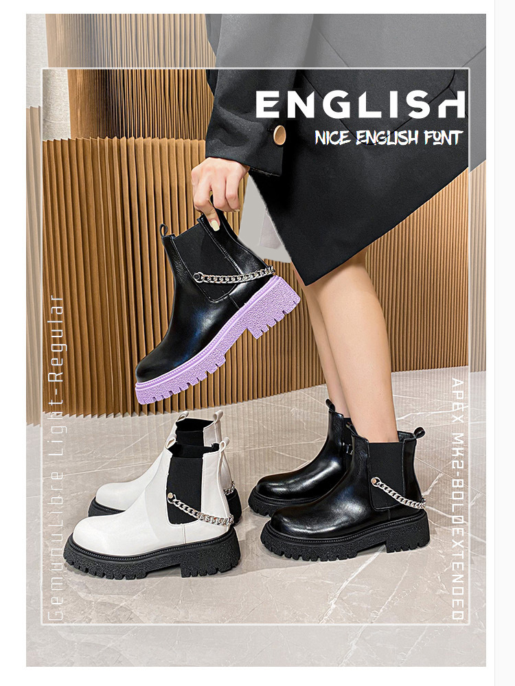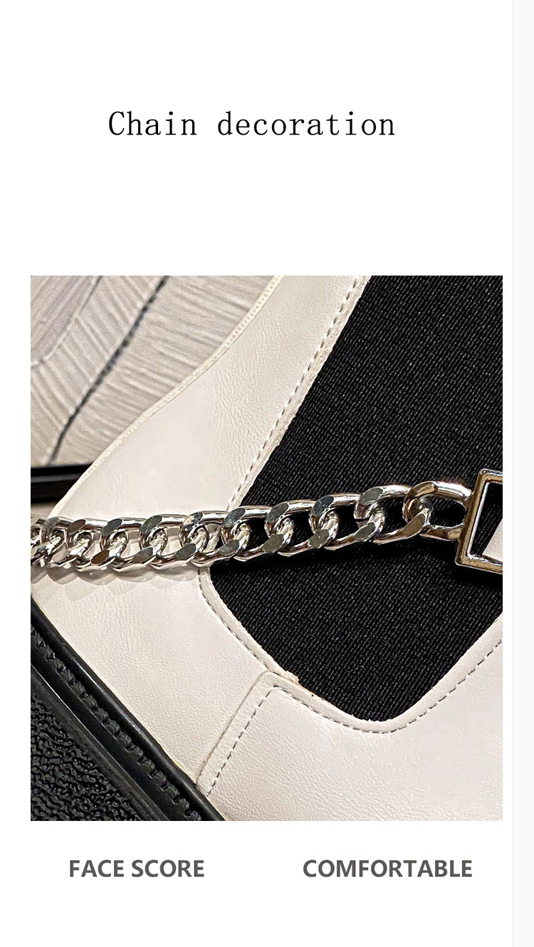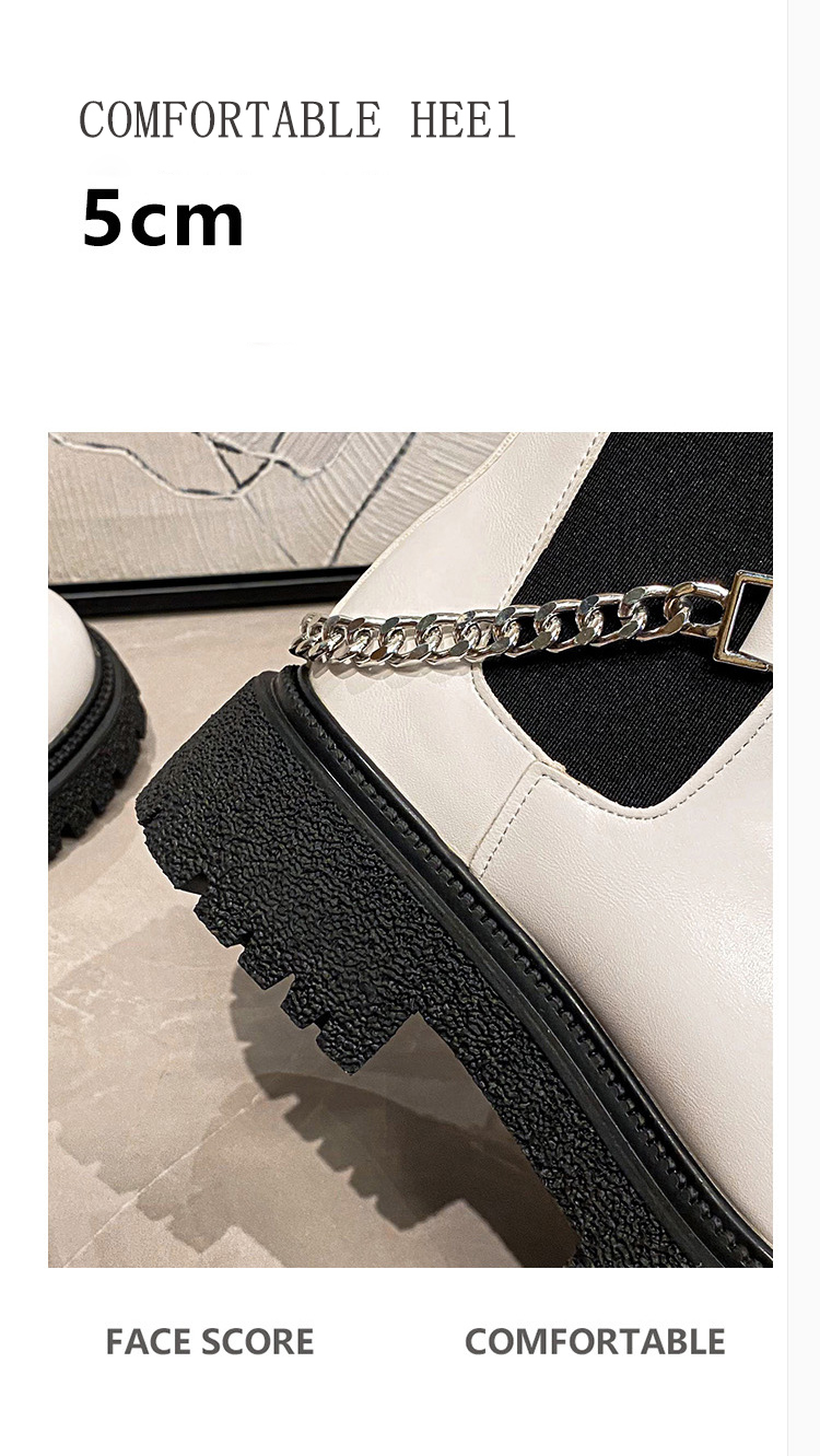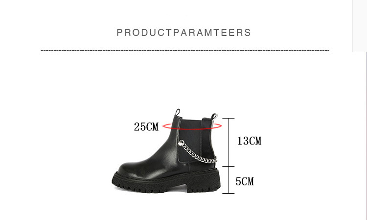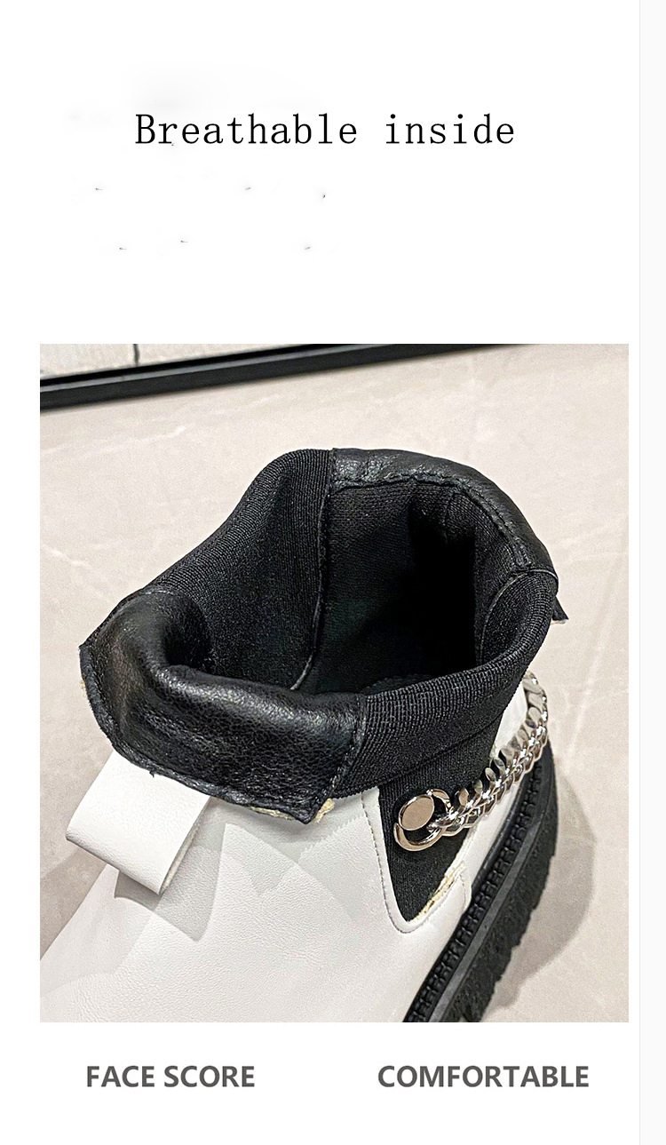 Martin Boots Fashion Short Boots Comfortable Flat Bottom Black PU Leather Boots Chain Decoration