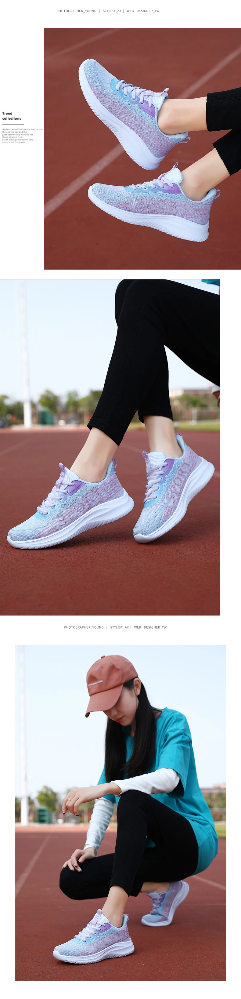 Spring and Summer New Mesh Embroidery Breathable Women's Sports Shoes Running Soft Sole Lightweight Women Casual Shoes