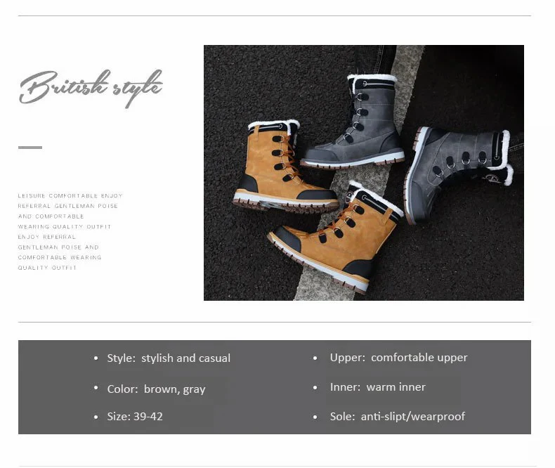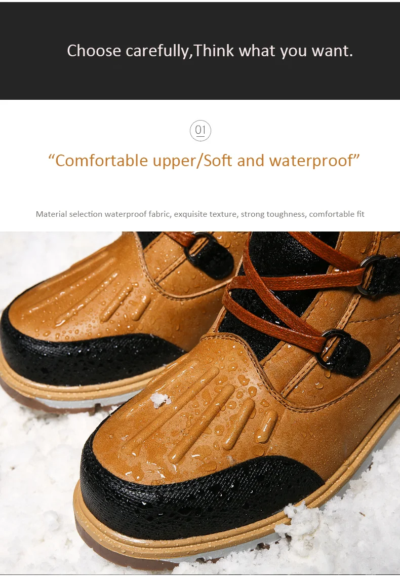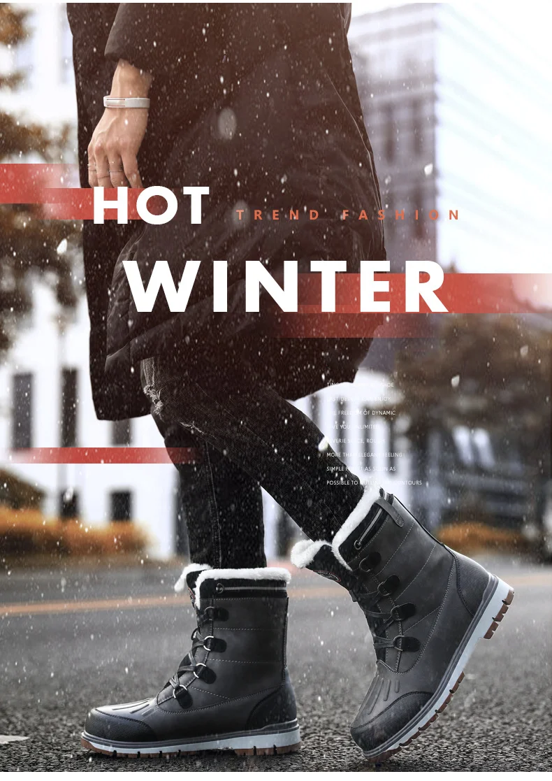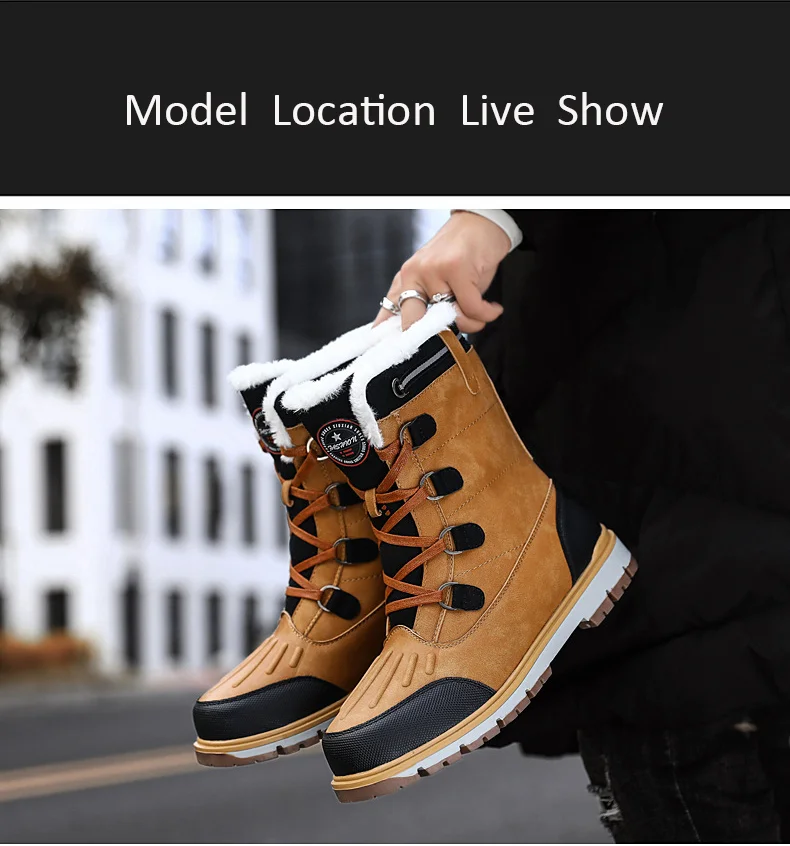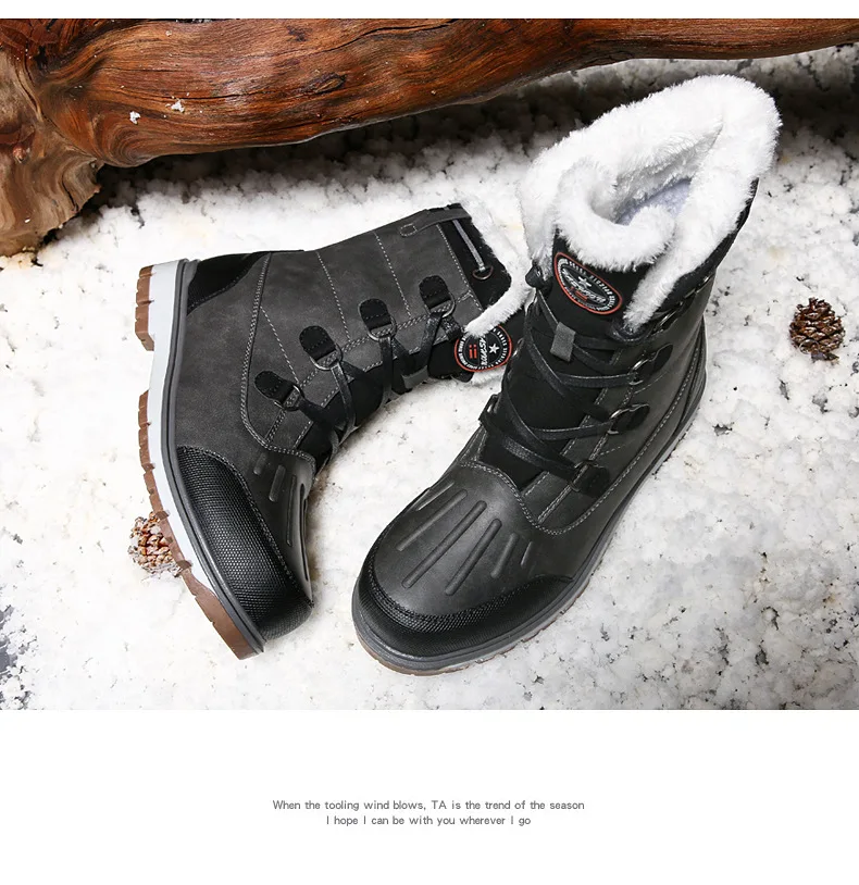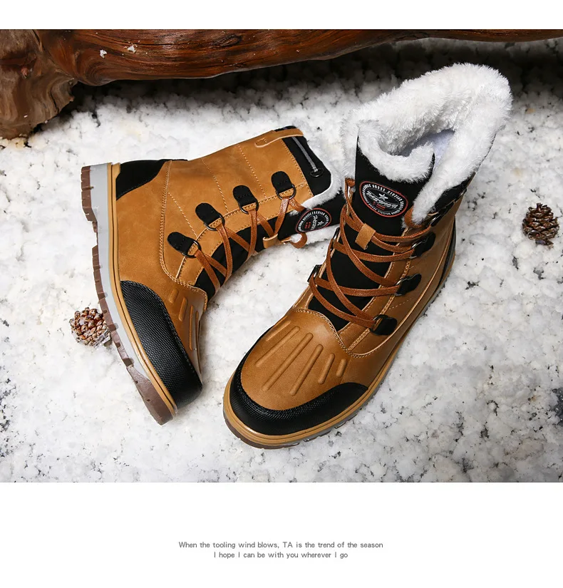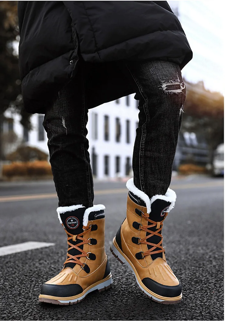 Wholesale High Quality Leather Waterproof Men's Snow Boots Largr-Size High Top Cotton Warm Non-Slip Snow Boots For Man