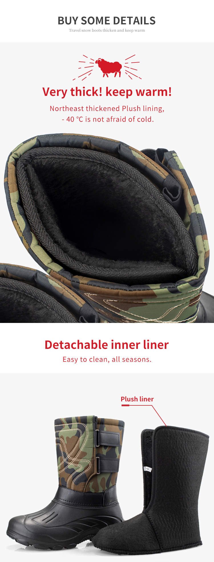 Winter outdoor men's snow boots with the most favorable price, waterproof, anti-skid, warm and high top